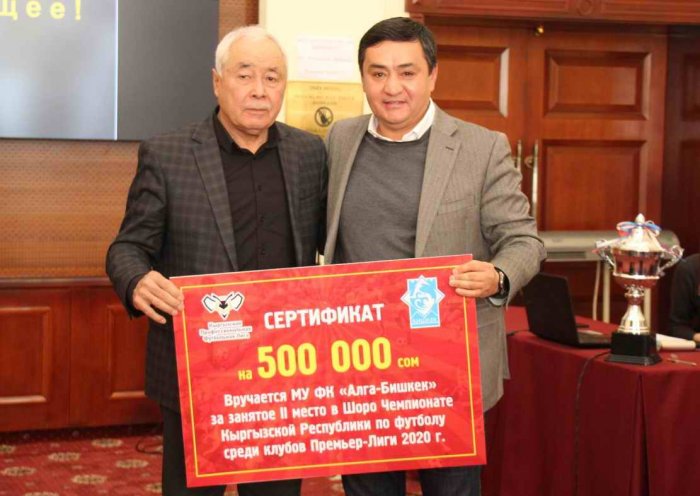 Футболистов «Алги» поздравили первый вице-мэр Алмаз Кушбекович Бакетаев и вице-президент КФС Нурбек Аманжолоевич Атаканов, который вручил команде 500 тысяч сомов.