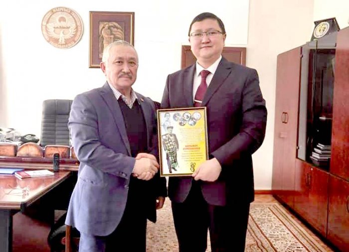 Министр культуры, информации, спорта и молодежной политики КР Кайрат Иманалиев встретился с победителем Олимпийских игр 1980 года, четырехкратным чемпионом мира и двукратным чемпионом Европы по тяжелой атлетике Каныбеком Осмоналиевым.