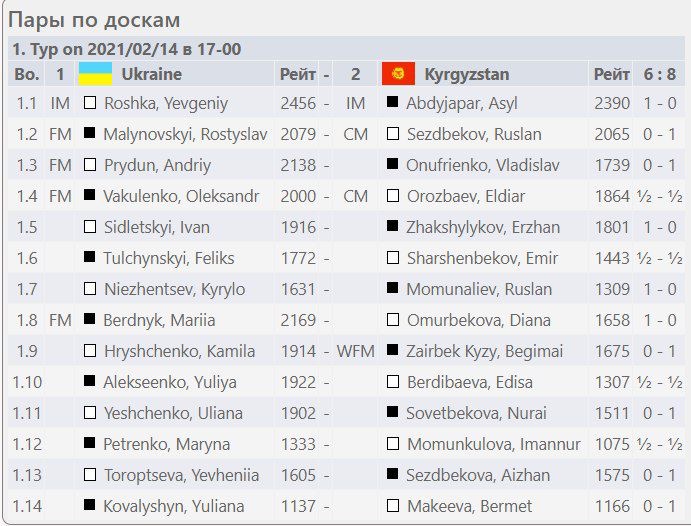 В первом матче Кыргызстан обыграл сборную Украины со счетом 8:6, а во втором была зафиксирована ничья - 7:7. Партии транслировались на площадках: Chess24, Chessbase, ChessBomb, Chess.com, Followchess, KingWatcher. А главный организатор матча - международный арбитр и мастер ФИДЕ Александр Прохоров - вел в прямом эфире стрим в ютубе и фейсбуке.