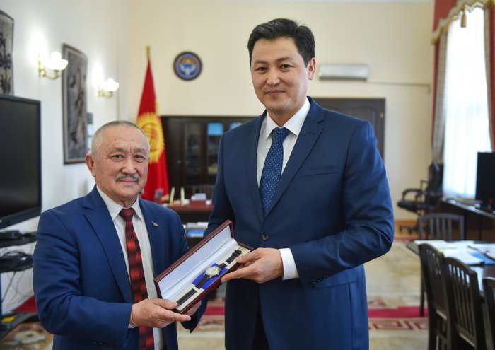 Премьер наградил Олимпийского чемпиона именными часами и подарил на память многотомное произведение «Кыргыздар».