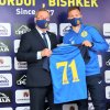 Далее была представлены новые комплекты игровой формы на сезон-2021.Так, не изменяя своим многолетним традициям, домашний комплект выполнен в клубных, желто-синих цветах, которую представил полузащитник Нурлан Сарыкбаев.