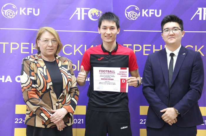 На церемонии закрытия курсов технический директор Кыргызского футбольного союза Анарбек Дарданович Ормомбеков поздравил участников с успешным окончанием обучения и вручил тренерские лицензии категории «D» КФС, успешно сдавшим экзамен. Всего в рамках данных курсов успешно завершили обучение 22 человек.