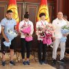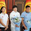 У трапа самолета призеров и членов сборной встретили руководитель Администрации президента Суйунбек Касмамбетов и заместитель председателя Кабинета Министров Жылдыз Бакашова.