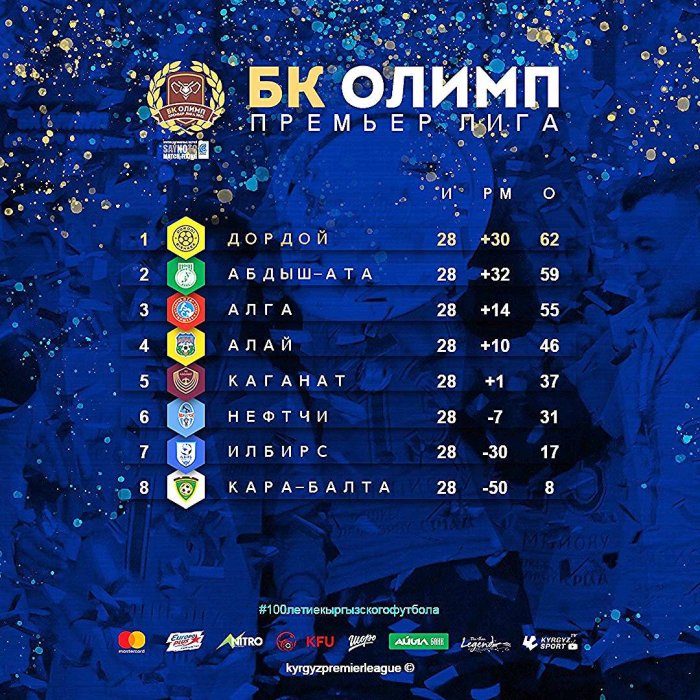 Впервые за несколько лет чемпионат Кыргызстана по футболу получился чрезвычайно жарким - особенно его концовка. Почти до последнего на титул претендовали сразу три коллектива - «Дордой», «Абдыш-Ата» и «Алга». А конкуренция, как говорят, двигатель прогресса. Ждем нового сезона Премьер-Лиги, ждем изменений, новых побед, команд и свершений!