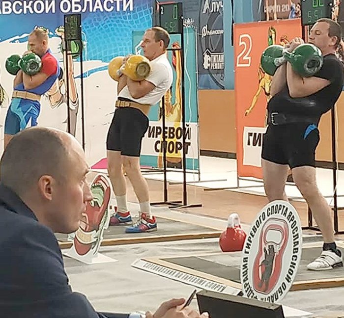 Александр Петров, рывок - 214 раз, толчок 143 раз вес гири 16 кг - 1-е место.