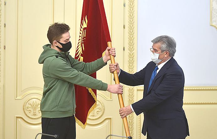 В завершение встречи Суйунбек Касмамбетов передал спортсмену Максиму Гордееву флаг Кыргызской Республики и еще раз пожелал успешного выступления и новых побед спортсмену.