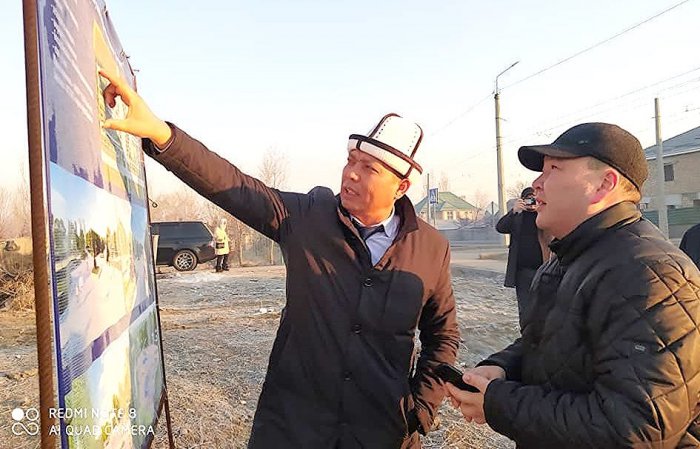 Глава Ленинского района города Бишкек Русланбек Тагаев совершил выезд и осмотрел территорию, где планируется построить новый сквер.