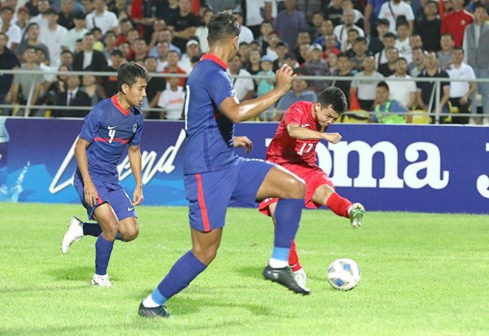 А на 57-й минуте команда Сингапура открыла счет - после откровенного провала защиты сборной Кыргызстана «семерка» сингапурцев Янг Сонг-Уй выскочил один на один с нашим голкипером, обыграл его на замахе и отправил мяч без сопротивления в пустые ворота - 1:0.