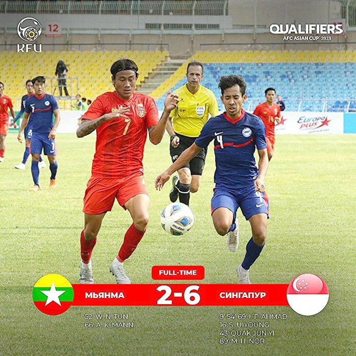 - Голы: Вин Ньянг Тун, 53, Манн Аунг Каунг, 66 - Ихсан Фанди, 9, 54, 70, Янг Сонг-Уй, 16, Габриэль Куак, 42, Хафиз Нор, 89.