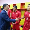 По завершению матча Глава государства зашел в раздевалку национальной сборной, где лично поздравил команду с этим успехом.