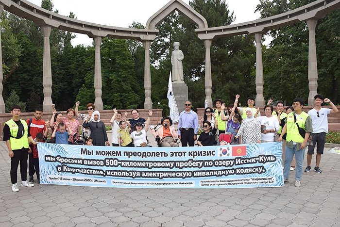 «Инвалидность - это вызов. Мы опечалены этой реальностью, и чтобы выразить поддержку и надежду на то, что мы снова сможем подняться, мы бросаем вызов 500-километровому пробегу по озеру Иссык-Куль», - сказал Чой Чан Хён.