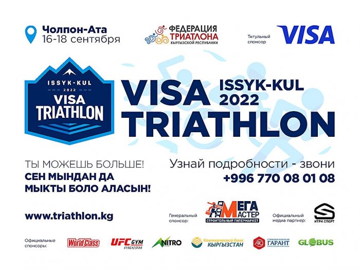 16, 17 и 18 сентября на побережье озера Иссык-Куль пройдут крупные соревнования по триатлону VISA TRIATHLON ISSYK-KUL-2022, которые соберут 300 спортсменов из Кыргызстана и Центральной Азии. Об этом сообщает Федерация триатлона КР.
