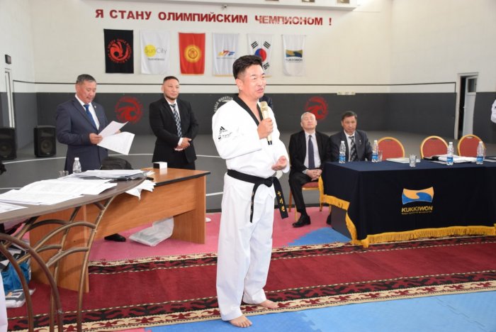 Всех присутствующих с праздником поздравил технический директор Ассоциации таэквондо WT КР, официальный представитель Центра «Куккивон» в Кыргызстане господин Ли Сын Гю. Поздравил собравшихся и президент Ассоциации таэквондо WT КР, почетный член Национального Олимпийского комитета Алексей Филиппович Пак.