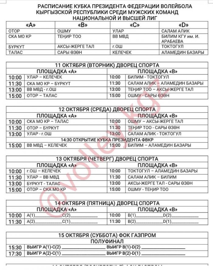 Предварительные игры состоятся во Дворце спорта имени Кожомкула, а финалы - в ФОК «Газпром» в Бишкеке. Идем на волейбол!