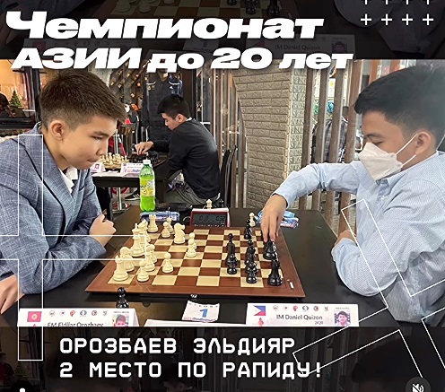 Шахматист из Кыргызстана, Мастер ФИДЕ Эльдияр Орозбаев завоевал серебряную медаль чемпионата Азии среди юношей до 20 лет по рапиду.