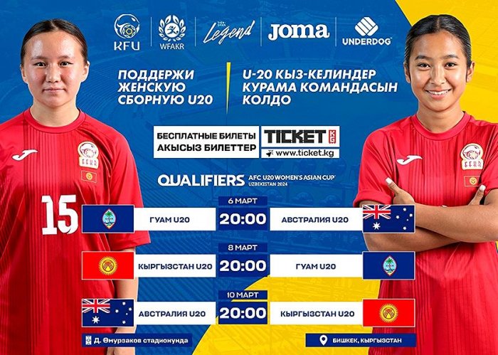 С 6 по 10 марта в Бишкеке на стадионе им. Долона Омурзакова состоятся матчи Первого отборочного раунда женского Кубка Азии-2024 по футболу (U-20). В турнире участвуют команды, составленные из футболисток не старше 20 лет.