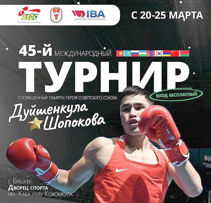 С 21 по 25 марта во Дворце спорта имени Каба уулу Кожомкула в Бишкеке пройдет традиционный международный турнир по боксу среди мужчин, посвященный памяти Героя Советского Союза Дуйшенкула Шопокова.