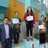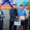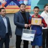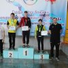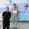 Главный тренер сборной команды, Заслуженный тренер КР Евгений Петрашов вручил подарочный сертификат лучшему пловцу чемпионата Азии среди школьников Михаилу Хегай. В его копилке - 6 золотых и 2 серебряных медали. Также ему предоставилось право поднять флаг Кыргызской Республики.