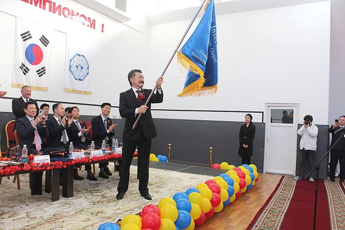 Президент GCS International Доктор Чунг Вон Чой передал флаг президенту GCS КР и сертификат о назначении первого президента GCS КР Пак Алексею Филипповичу.