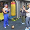 Поддержать марафонца пришли спортсмены, близкие, друзья и журналисты. Среди них - известные гиревики Екатерина Старикова и Руслан Тагиров.