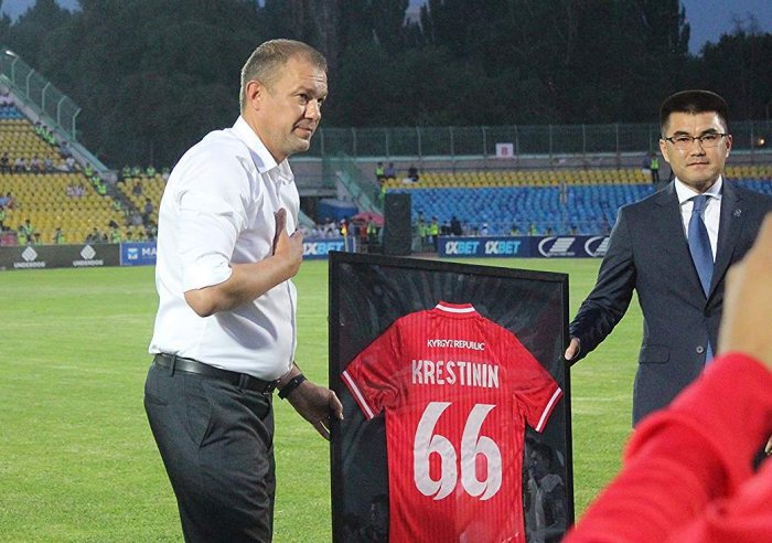 Отметим, что перед матчем Кыргызстан - Афганистан с нашими футболистами пообщался теперь уже бывший тренер нашей команды Александр Сергеевич Крестинин. Футболисты встретили его с восторгом, а КФС подарил ему почетную футболку с номером 66. Александр Сергеич, возвращайся! При Крестинине такого не было!