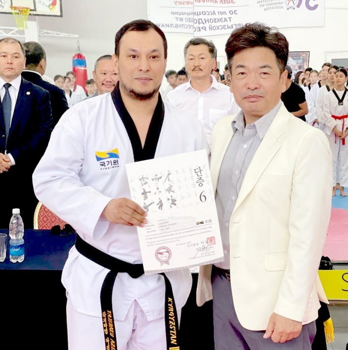 Старший тренер Ассоциации таэквондо WT Кыргызской Республики Азим Таджибаев получил мастерскую степень - международный сертификат Черного пояса 6-го Дана из Южной Кореи (KUKKIWON).