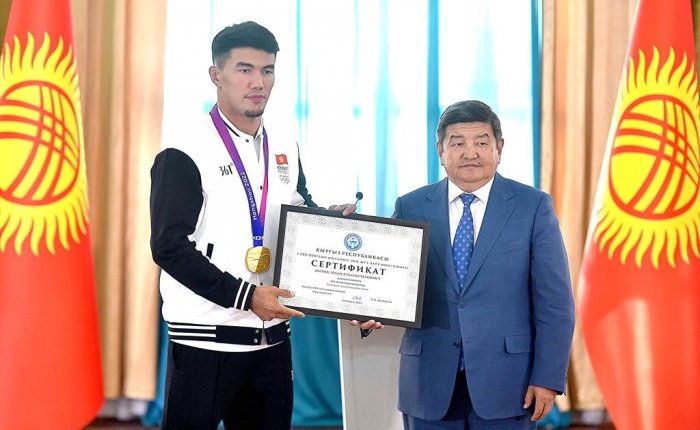Председатель Кабмина Акылбек Жапаров наградил призеров XIX летних Азиатских Игр из Кыргызстана денежными сертификатами. Об этом сообщает gov.kg.
