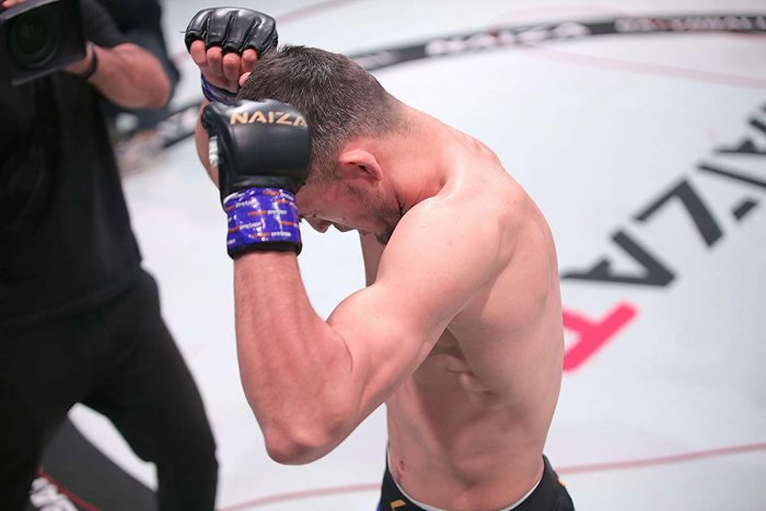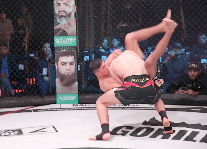 Восходящая звезда лиги Naiza, двукратный чемпион мира по панкратиону Кошен Аканов задушил Женисбека Курманбекова в первом раунде.