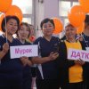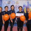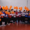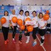 Участницы команд в знак поддержки женщин и девочек, которые прошли через насилие, надели желтые галстуки и вместе запустили желтые шары.