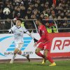В первой половине тайма практически все атаки нашей команды строились через как всегда (РЕ) активного на своем фланге Гулжигита Алыкулова, однако полузащитник белорусского «Немана» то до мяча не добегал, то он до него не доходил вследствие неточных передач от партнеров. В итоге, на 9-й минуте Алыкулов решился на удар из-за пределов штрафной, но промахнулся.