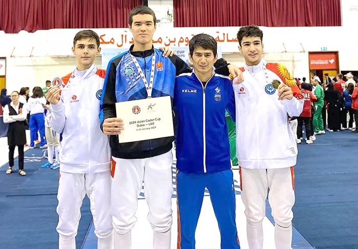 Участники юношеской сборной Кыргызстана по фехтованию Барсбек Райымбеков, Даниил Лепихов и Рустам Исламов заняли первое место в на Кубке Азии, проходившем в Дубае (ОАЭ).