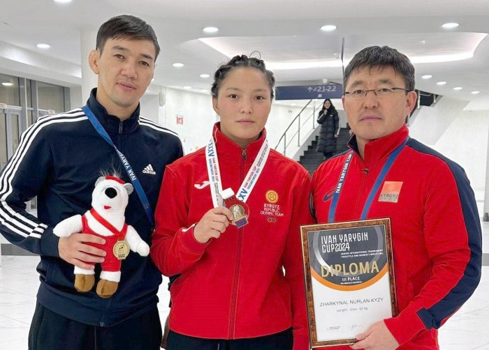 Спортсменки из Кыргызстана Калмира Билимбек кызы, Жаркынай Нурлан кызы и Нурзат Нуртаева завоевали бронзовые медали на XXXV международных соревнованиях Кубок «Ивана Ярыгина-2024» по вольной борьбе, который прошел с 24 по 29 января во Дворце спорта имени Ивана Ярыгина в Красноярске (Россия).