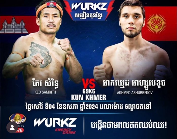 Соперником кыргызстанца в Wurkz KUN KHMER Tournament был Keo Samrith из из Камбоджи в весовой категории 69 кг в поединке по правилам муай-тай. Ахмед Ашурбеков показал очень зрелищный бой и уже в первом раунде отправил соперника в нокаут. Поздравляем!