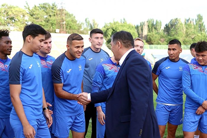 Перед началом тренировки президент Кыргызского футбольного Союза Камчыбек Ташиев встретился с игроками и пожелал им успехов в предстоящем матче.