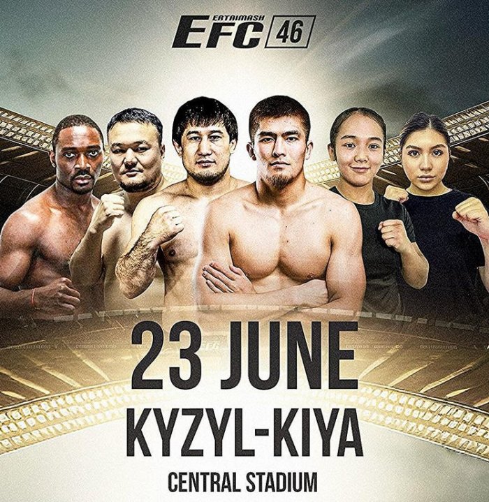 23 июня на центральном стадионе города Кызыл-Кия пройдет большой турнир по смешанным единоборствам EFC 46. Об этом сообщают efc_global и mma_kyrgyz.