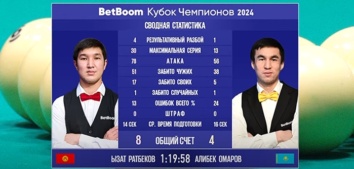 Финал турнира «BETBOOM Кубок Чемпионов-2024» по бильярдному спорту намечен на 8 августа. Желаем Ызатбеку Ратбекову победы!