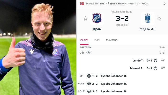 Благодаря этому успеху Йохансен с 18-ю забитыми мячами сумел подняться на вторую строчку в списке лучших бомбардиров. «Фрам» идет на четвертом месте в турнирной таблице третьего дивизиона Норвегии и за два тура до конца чемпионата уже лишился шансов на повышение в классе.