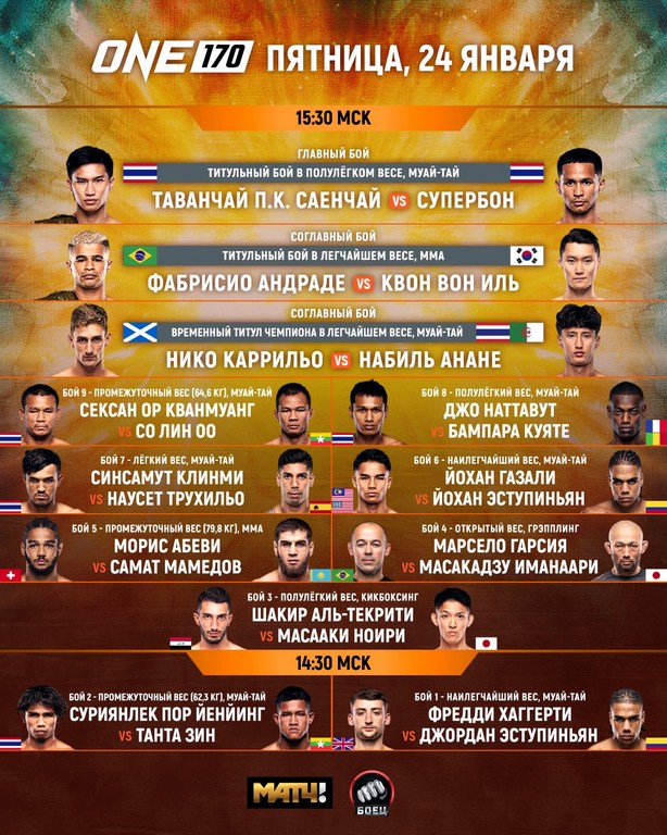 Супербон, в свою очередь, провел два успешных боя после поражения в декабре 2023 года, включая важную победу над Маратом Григоряном. Цель Супербона - стать чемпионом сразу в двух дисциплинах: муай-тай и кикбоксинге.
