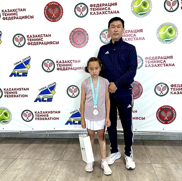 Семилетняя Тинай Мощина из Кыргызстана показала отличную игру, но в финале соревнований, ведя в счете, уступила хозяйке кортов, завоевав серебряную медаль. Это ее очередная награда.