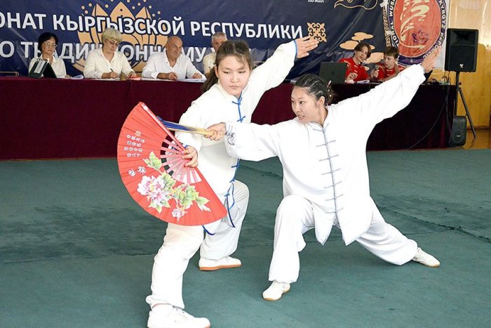 Спортсмены разных клубов и школ боевых искусств Федерации традиционного ушу КР из регионов Кыргызстана и Бишкека соревновались в различных стилях и направлениях ушу кунфу.