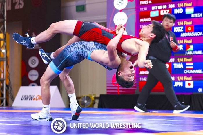 Сборная Кыргызстана по по греко-римской борьбе (возрастная категория до 17 лет) успешно стартовала на чемпионате Азии, который проходит в городе Вунгтау (Вьетнам).