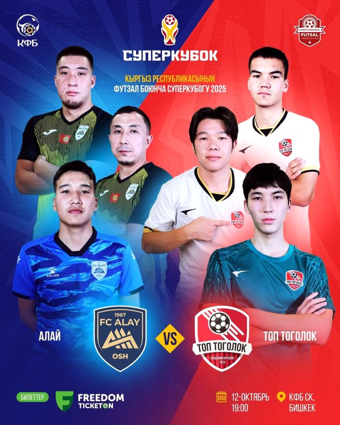 В поединке за Суперкубок сойдутся чемпион страны - «Алай» и обладатель Кубка - «Топ Тоголок».