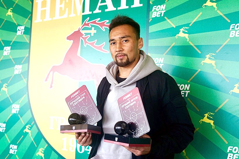 По итогам голосования болельщиков команды из Гродно кыргызстанца признали лучшим игроком месяца.