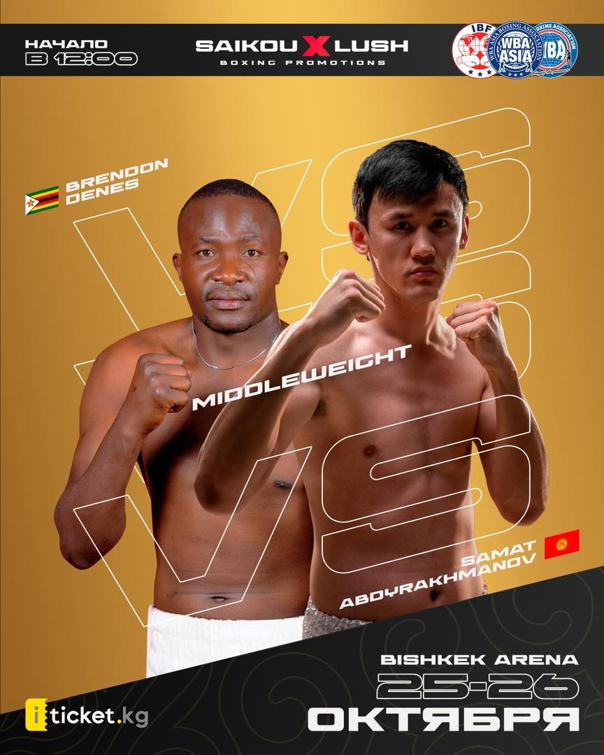 Соперником Самата Абдырахманова станет боксёр из Зимбабве Брендон Денес.