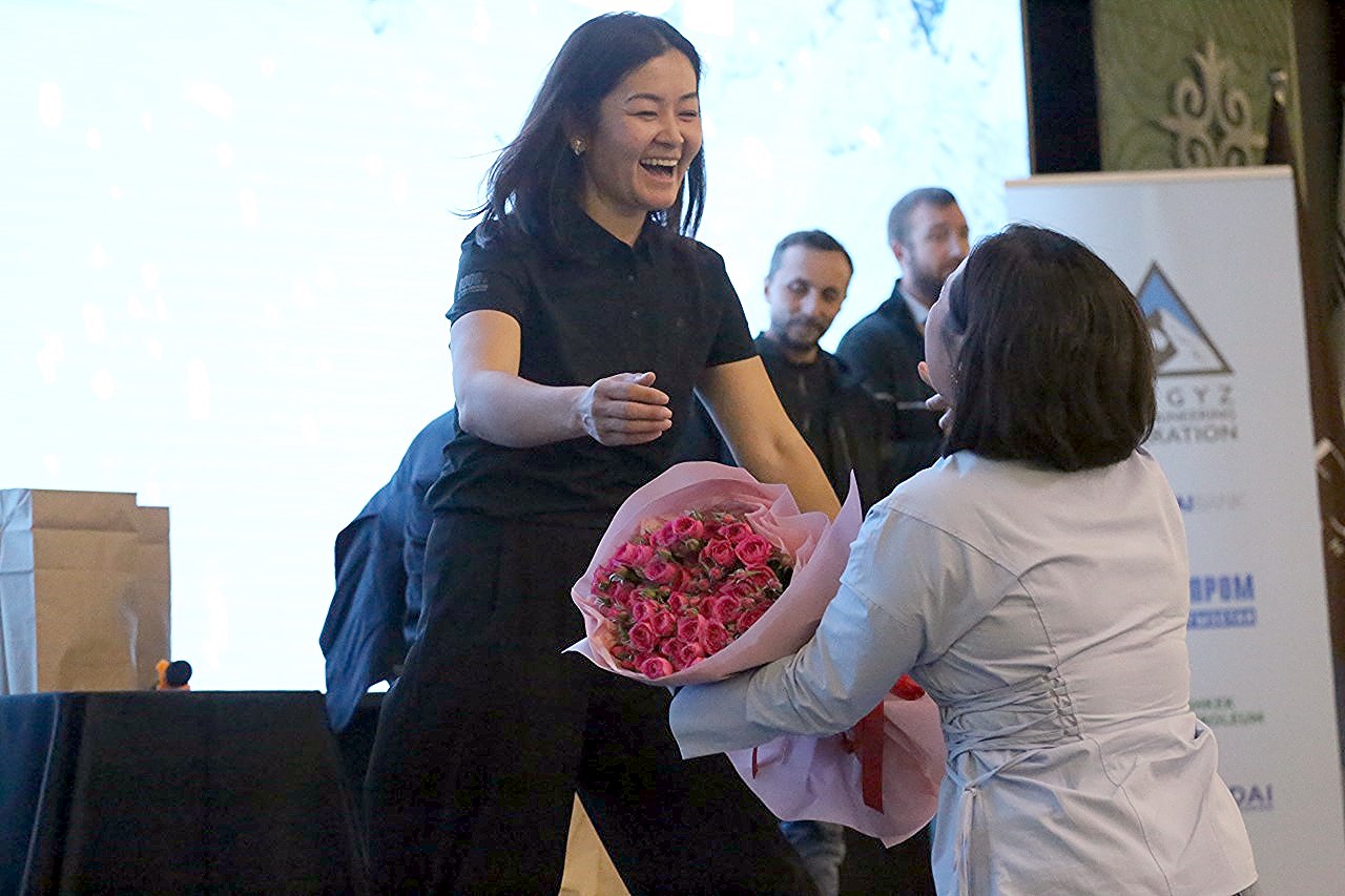 В рамках мероприятия президенту федерации и спортсменам были вручены награды. Юбилейной медалью «100 лет кыргызскому спорту» за вклад в развитие физической культуры и спорта Кыргызской Республики были награждены Эдуард Кубатов, Марина Гальцова, Николай Гутник, Наиль Муратов, Наталья Тян и Насиба Эшмурадова.
