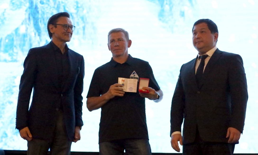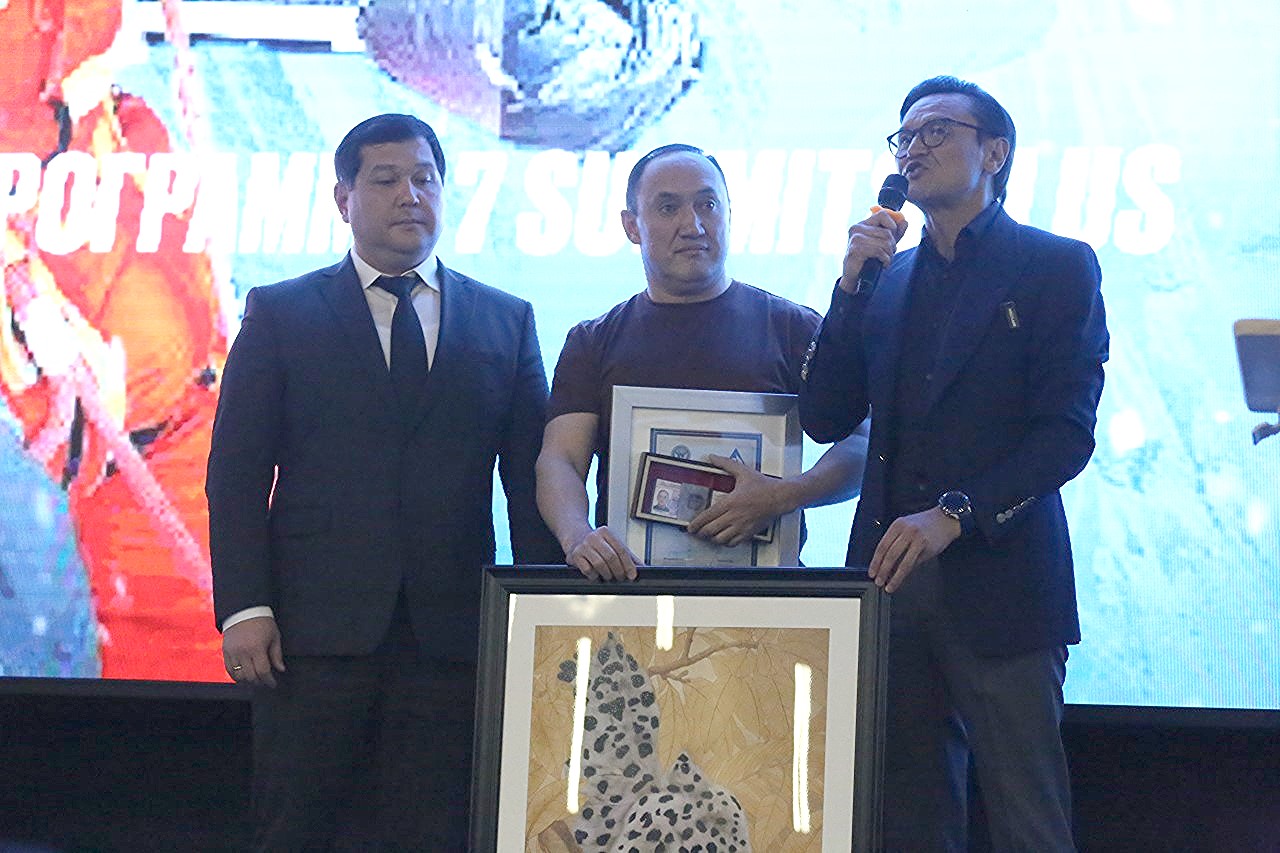 Вручение почётных титулов - «Ак-Илбирс» и «7 Summits» - вручает Молдажиев.
