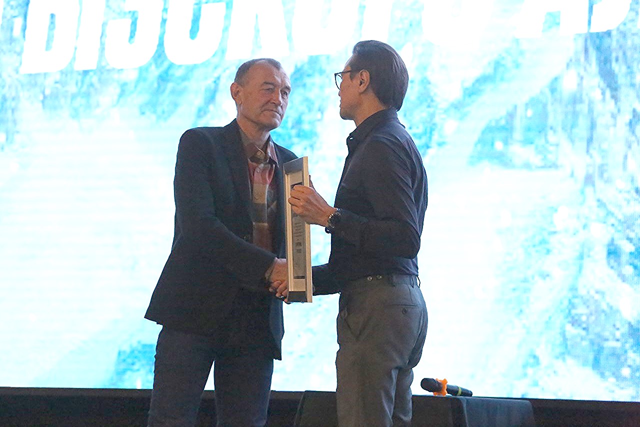В официальной части церемонии директор агентства Казыбек Молдажиев выступил с речью, отметив, что альпинизм - это не только заснеженные вершины и суровые погодные условия, но и месяцы подготовки, усталость, сомнения и крепкая вера в команду.