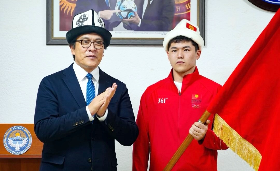 В ходе мероприятия капитану национальной сборной, спортсмену по пара пауэрлифтингу Азизбеку Нарбаеву было вручено государственное знамя Кыргызской Республики.