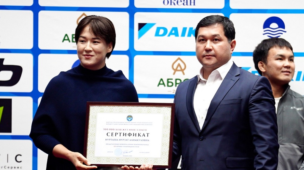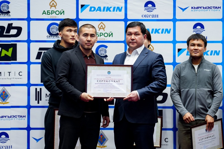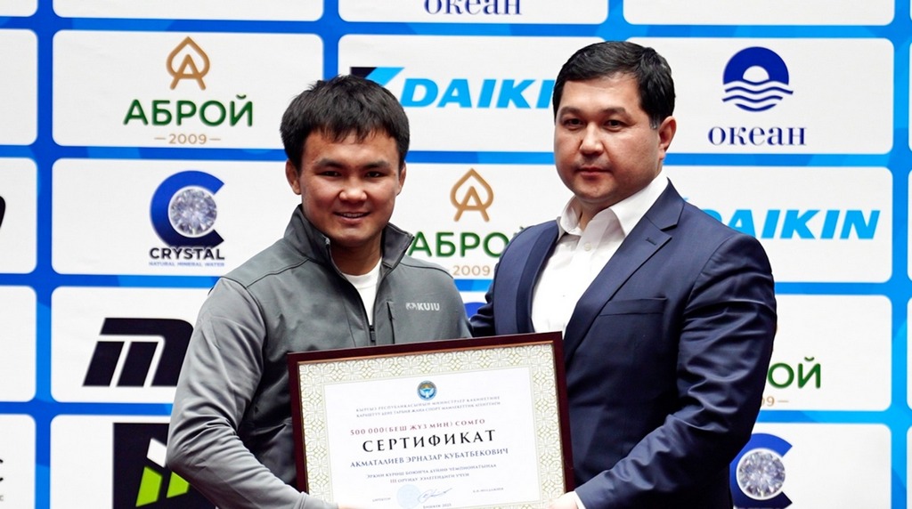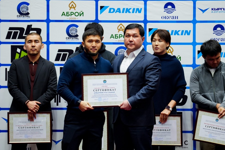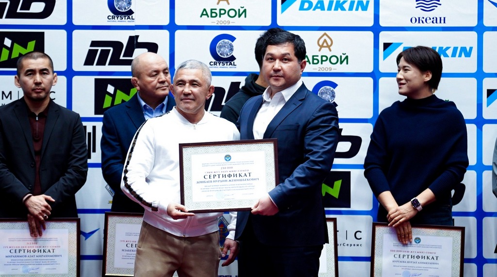 Как сообщают sport.gov.kg и wrestlingkgz_official, премии были вручены в рамках открыттия чемпионата Кыргызской Республики по греко-римской борьбе среди взрослых, который проходит с 22 по 23 декабря в Бишкеке, на малой арене «Жаштык».