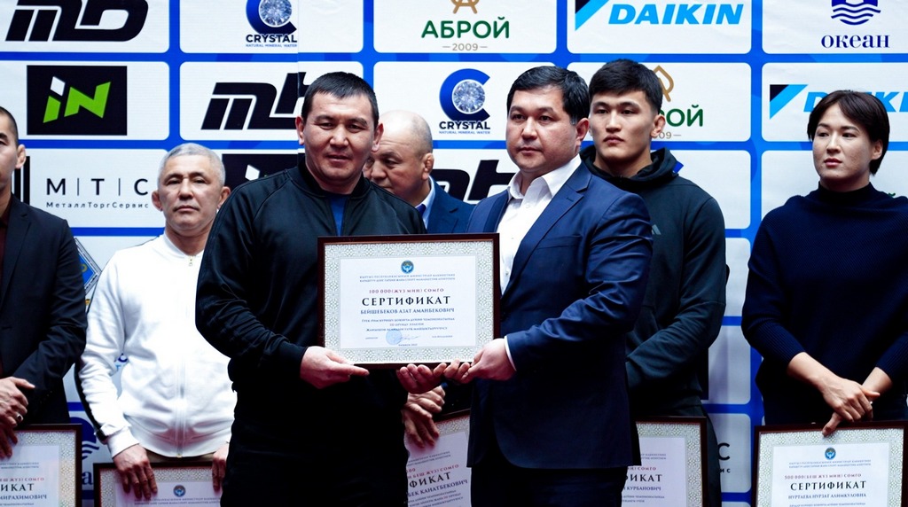 - Бекзат Алмаз уулу - 2-е место по вольной борьбе в весовой категории до 57 кг - 750 000 сомов;